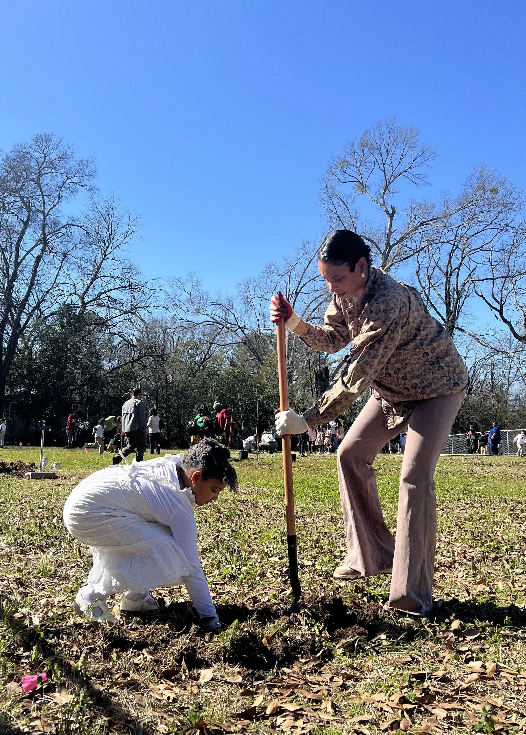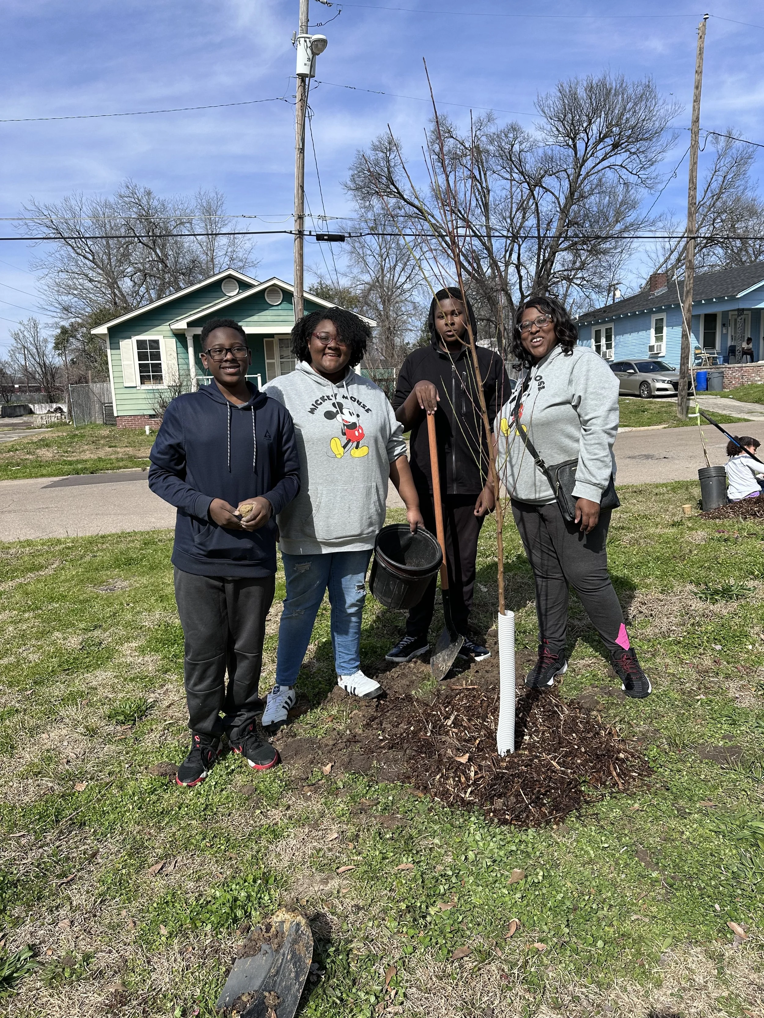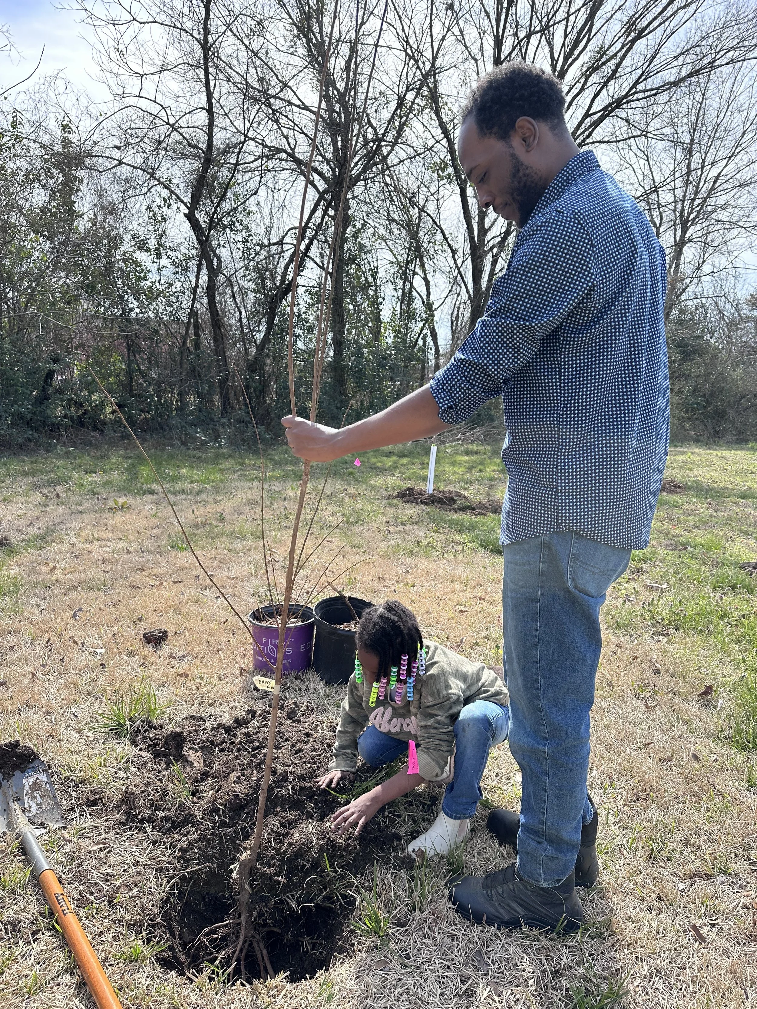 In the Spring of 2025, The Fruit Tree Planting Foundation and Midtown Partners, with generous support from Arbor Day Foundation and Amazon, launched an innovative program to plant and distribute more than 500 trees in the underserved neighborhood of Midtown to provide families with clean air and improved nutrition for generations. The partnering nonprofits installed five fruit tree orchards at schools, community gardens, and a public park. Hundreds of additional trees were distributed, along with training and planting instructions, directly to households in the area to take home.